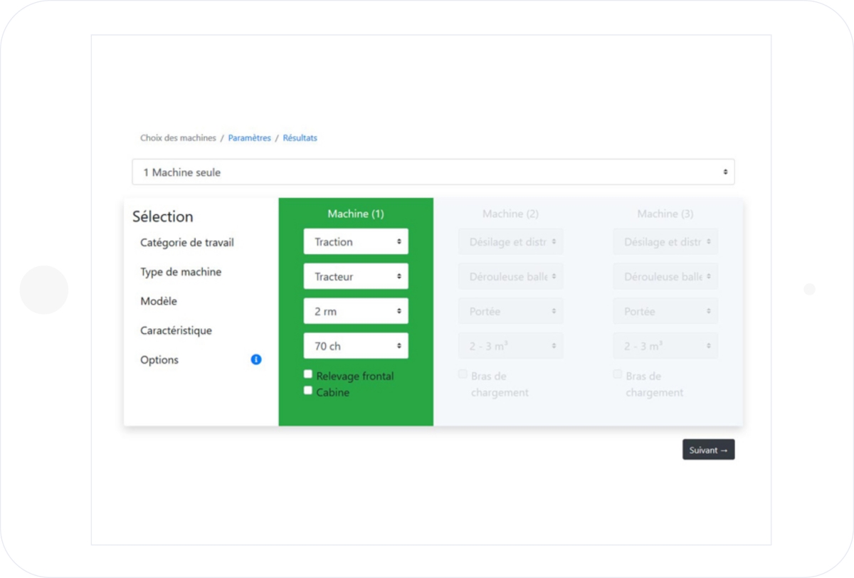 Un service en ligne qui vous permet de connaître le coût d'utilisation de plus de 386 machines agricoles en un clin d'œil ! Toutes les catégories de matériel agricole sont représentées : traction, travail du sol, semis, fertilisation, protection des plantes, récolte...